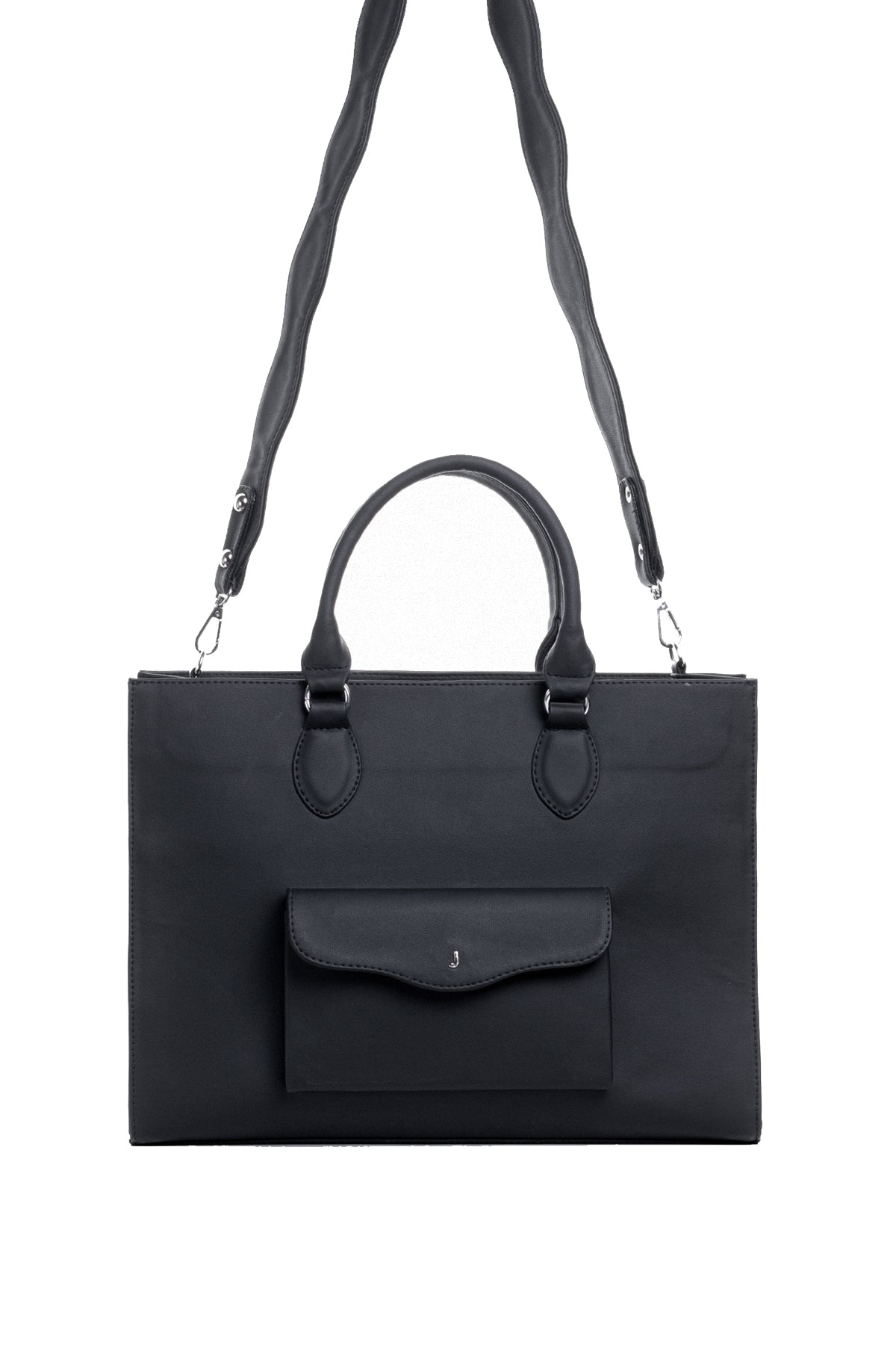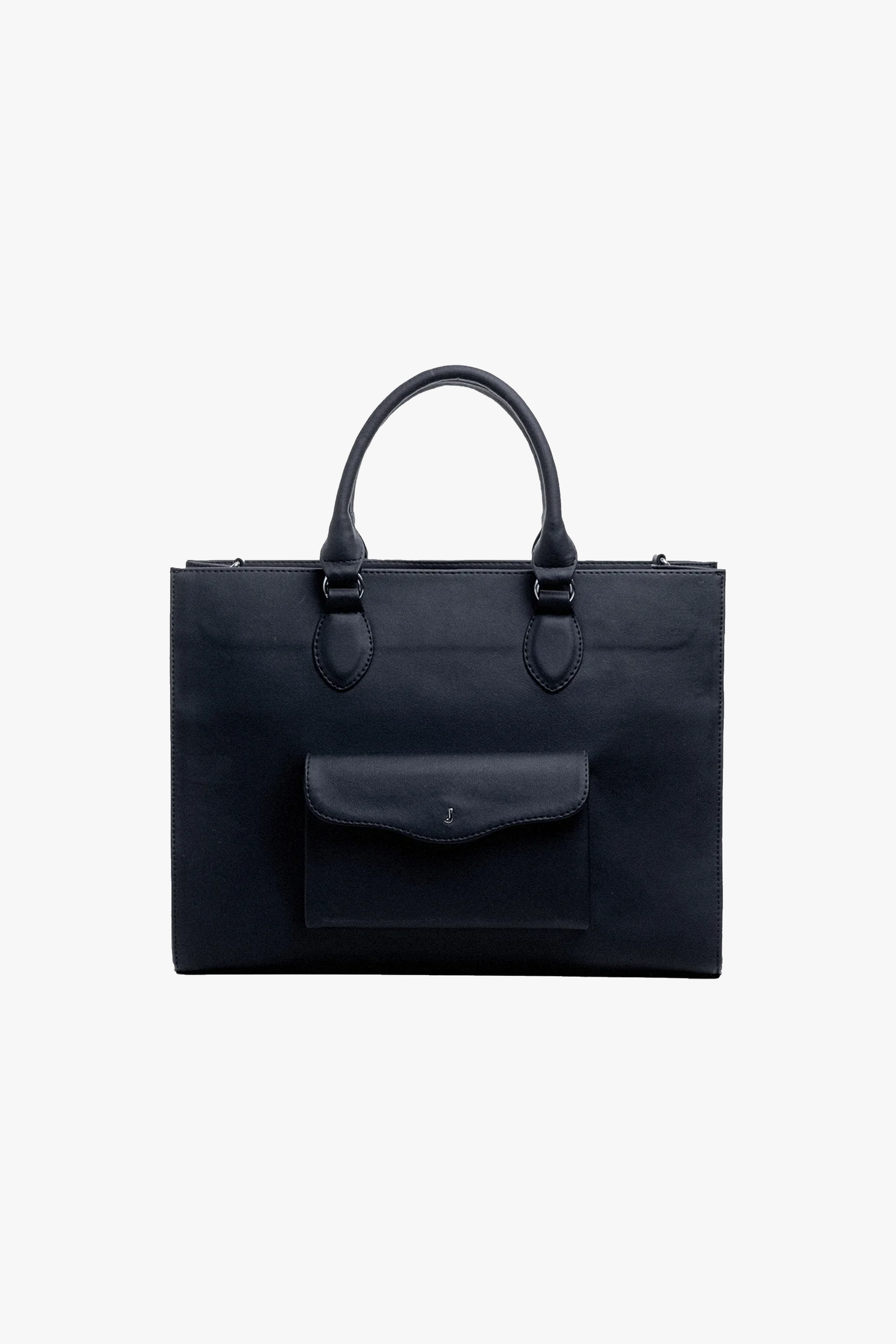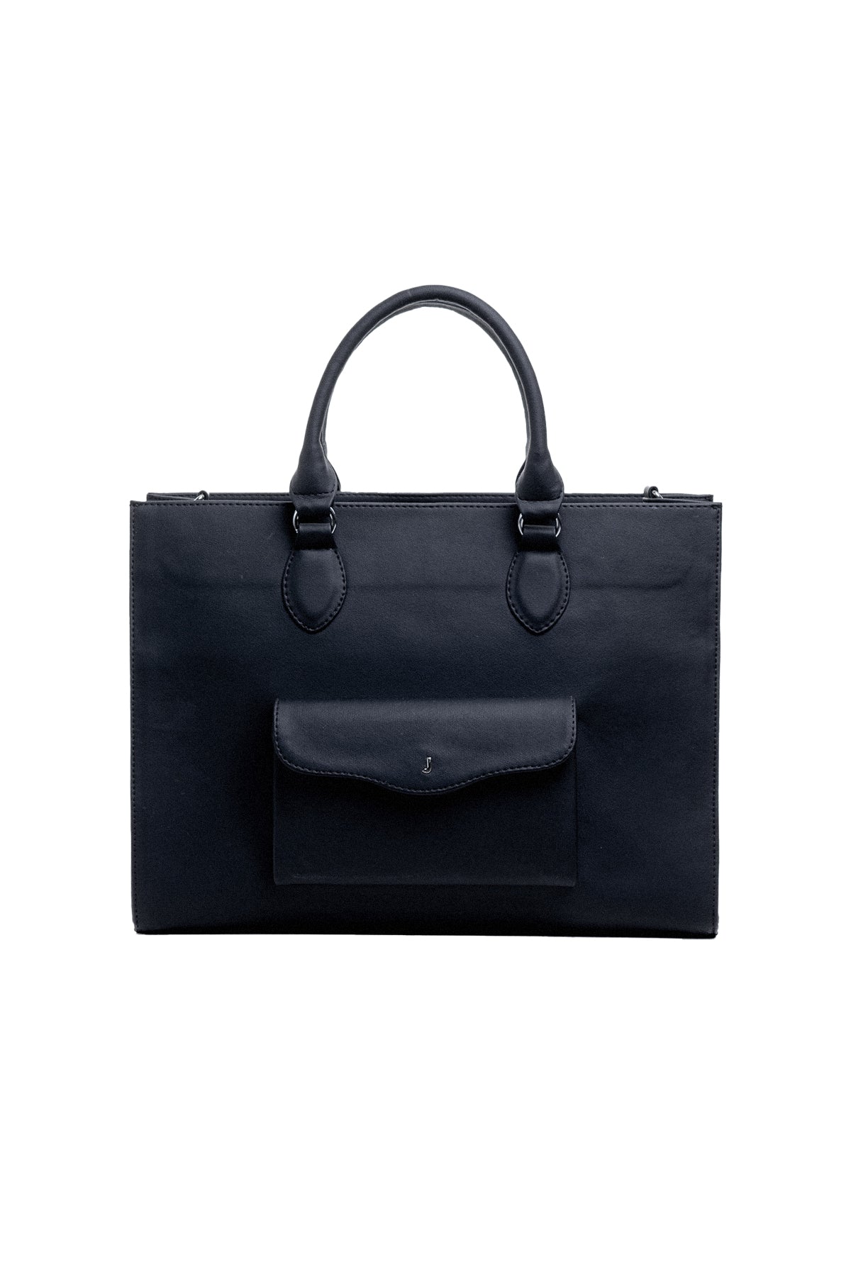 Our TOTE BAG is designed in water resistant vegan pvc leather with waterproof lining. It has a main compartment with pockets inside and a compartment designed exclusively for laptop with protective foam up to 15 inches, on the outside we find a pocket with flap in waves and hardware with letter “J” in stainless steel, this small pocket is ideal for everything we must always have on hand as keys, cards, headphones and other accessories.