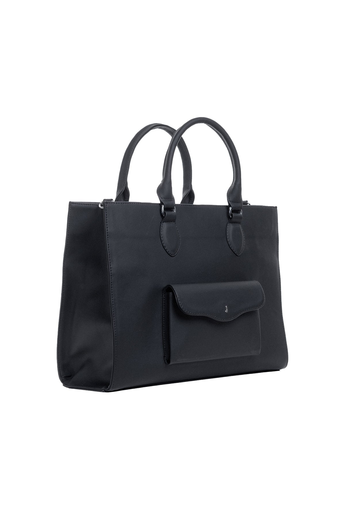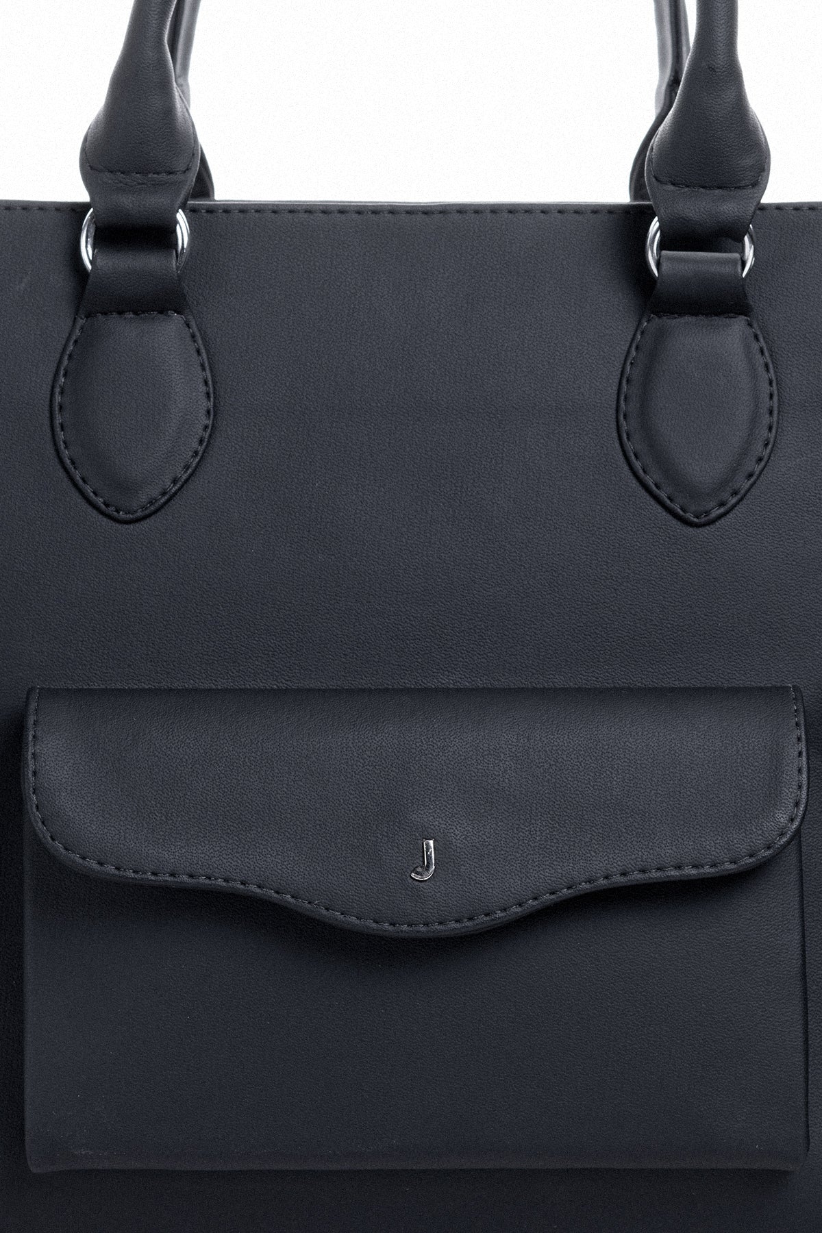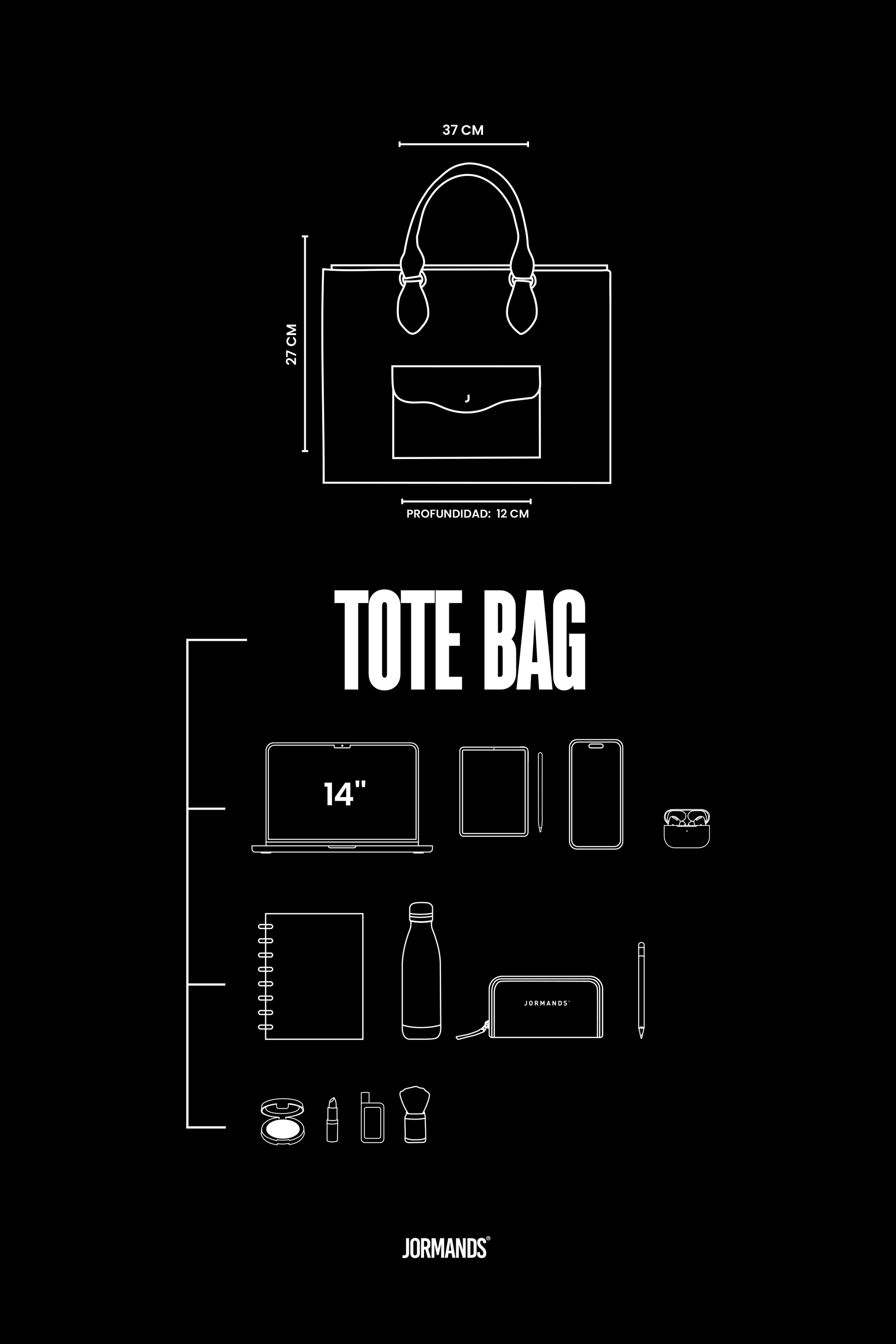 Our TOTE BAG is designed in water resistant vegan pvc leather with waterproof lining. It has a main compartment with pockets inside and a compartment designed exclusively for laptop with protective foam up to 15 inches, on the outside we find a pocket with flap in waves and hardware with letter “J” in stainless steel, this small pocket is ideal for everything we must always have on hand as keys, cards, headphones and other accessories.
